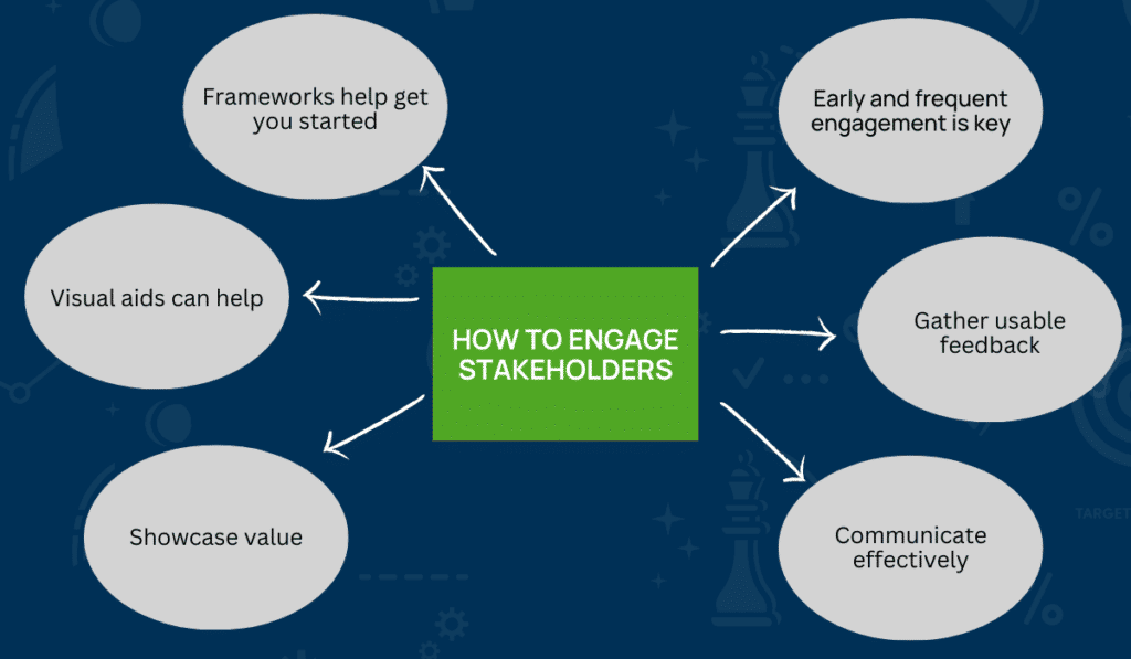It may help to consider a RACI (Responsible, Accountable, Consulted, and Informed) matrix to map stakeholders’ roles and responsibilities. This ensures no critical stakeholder is overlooked and that everyone understands their involvement.