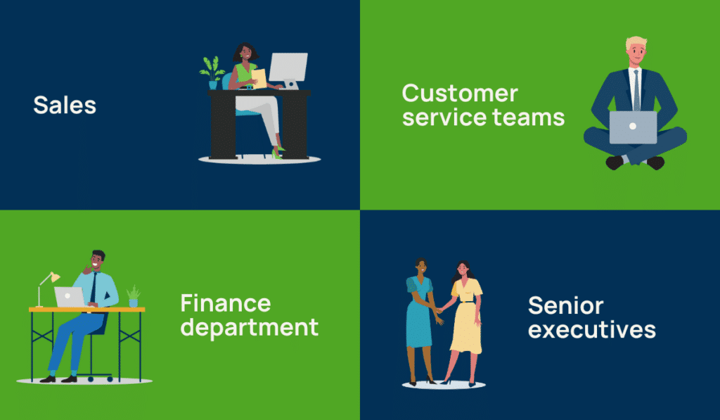 - Sales – You’re right to ensure you have the buy-in of the sales team. The ones who work to actually sell your products and services are key. But don’t forget about your sales managers, who might be dealing with escalations if something goes wrong, or your pre-sales team like marketing and Business Development Representatives who are nurturing potential leads